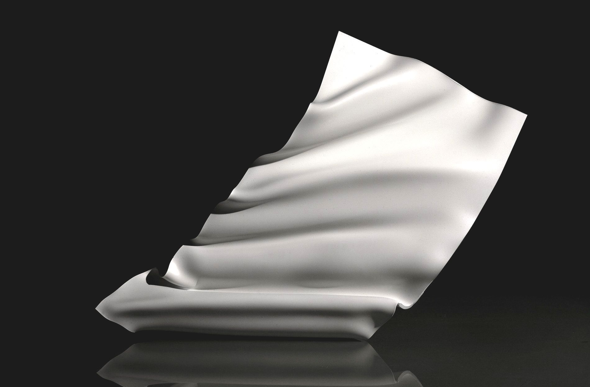 Freigeformte Leuchtobjekte aus Acrylglas, grundiert und lackiert.