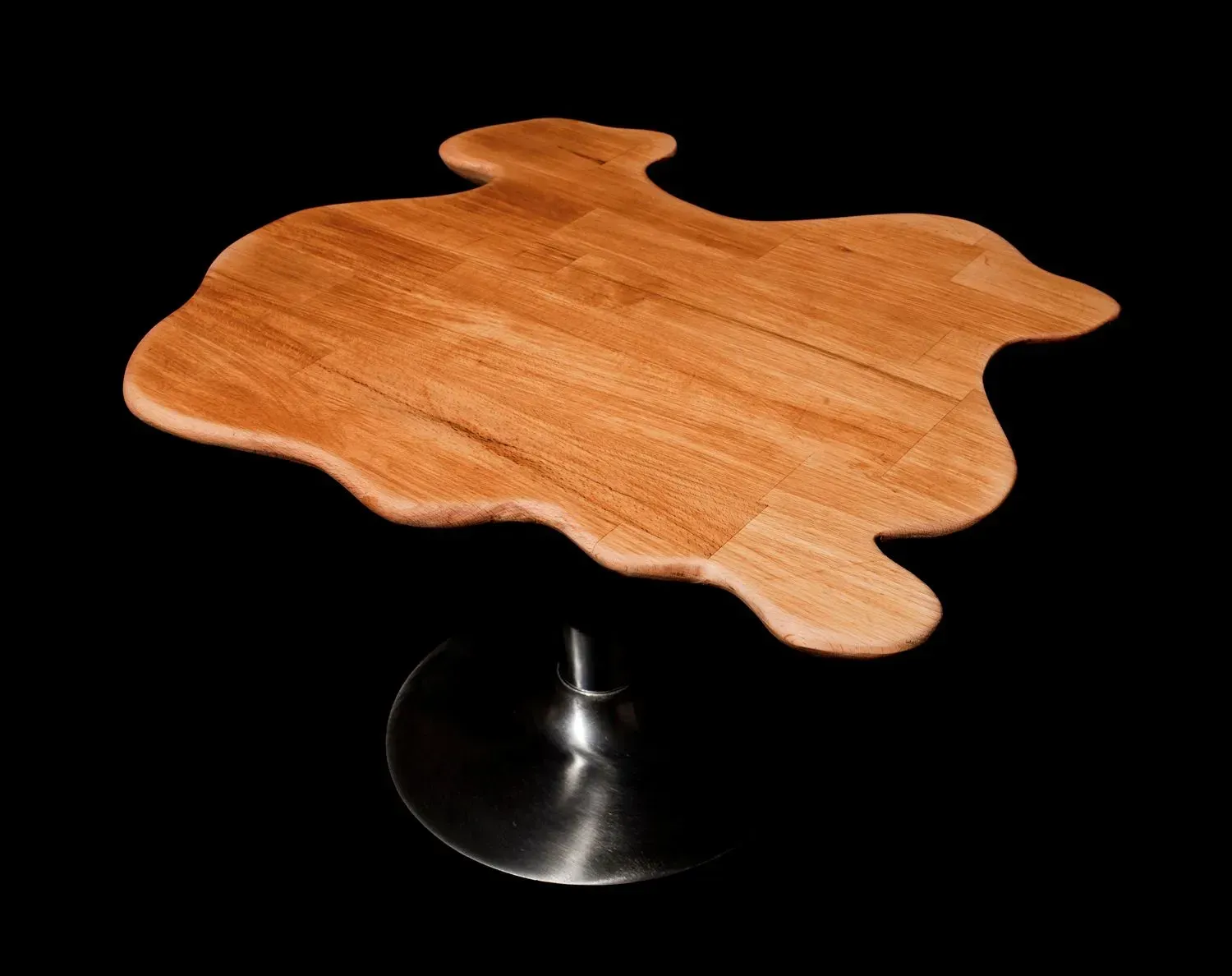 Die Tischplatte ist freigeformt, geschliffen und geölt.